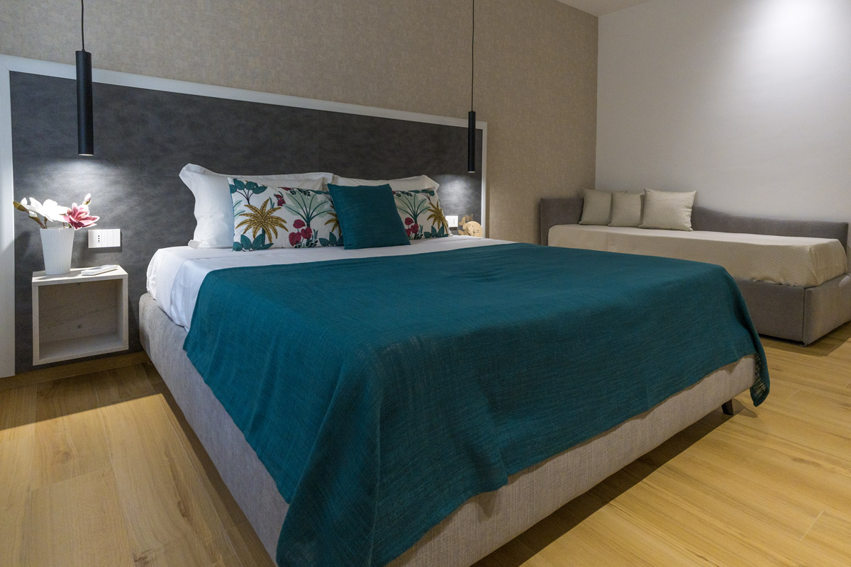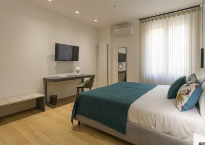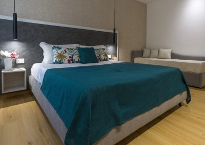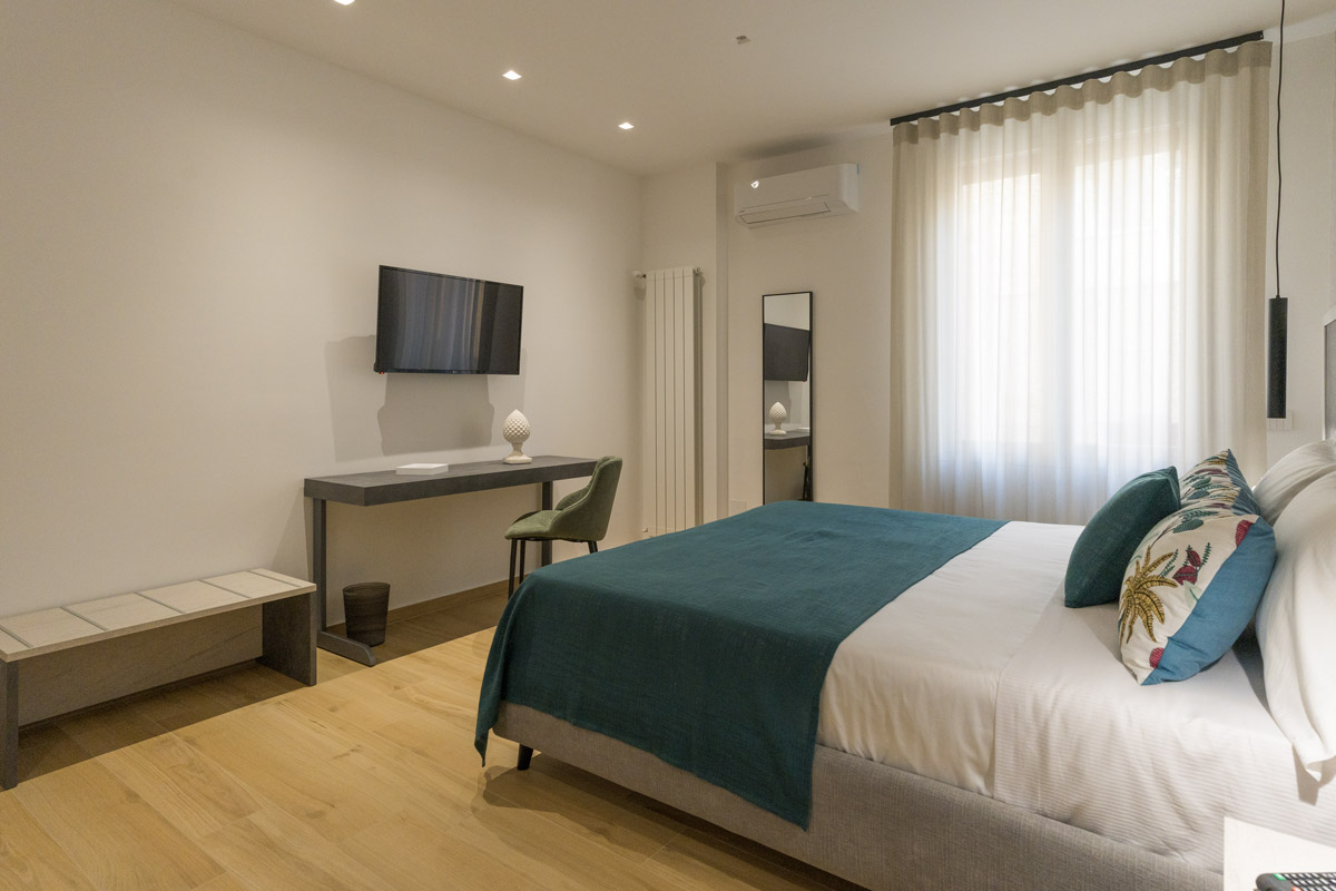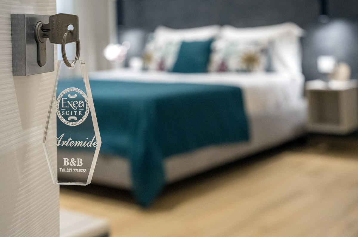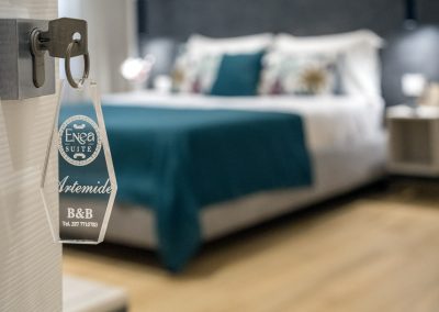 Artemide è una camera tripla deluxe di 25 m², insonorizzata e climatizzata. La camera ,dotata di aria condizionata e riscaldamento, è pavimentata in parquet. Le dimensioni del letto matrimoniale sono extra lunghe, oltre i 2 metri. In aggiunta, si trova un letto singolo. Sono presenti una varietà di comfort tra cui una scrivania, una TV a schermo piatto, un frigorifero, una cassaforte, wifi gratuito, canali via cavo, asciugamani, armadio, stand appendiabiti ,zanzariera, prese elettriche posizionate vicino al letto e culla gratuita per bambini da 0 a 3 anni disponibile su richiesta. È vietato fumare.