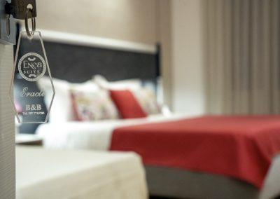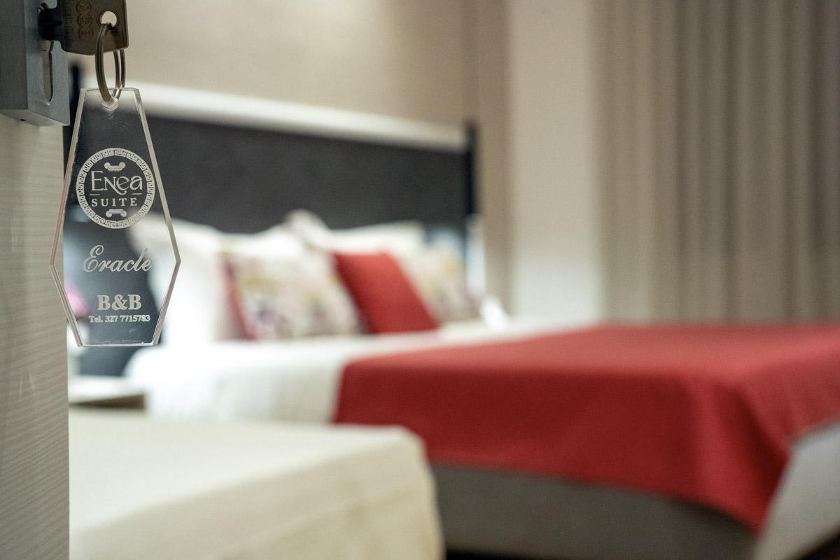 Eracle è una camera tripla deluxe di 25 m², insonorizzata e climatizzata. La camera ,dotata di aria condizionata e riscaldamento, è pavimentata in parquet. Le dimensioni del letto matrimoniale sono extra lunghe, oltre i 2 metri. In aggiunta, si trova un letto singolo. Sono presenti una varietà di comfort tra cui una scrivania, una TV a schermo piatto, un frigorifero, una cassaforte, wifi gratuito, canali via cavo, asciugamani, armadio, stand appendiabiti ,zanzariera, prese elettriche posizionate vicino al letto e culla gratuita per bambini da 0 a 3 anni disponibile su richiesta. È vietato fumare.